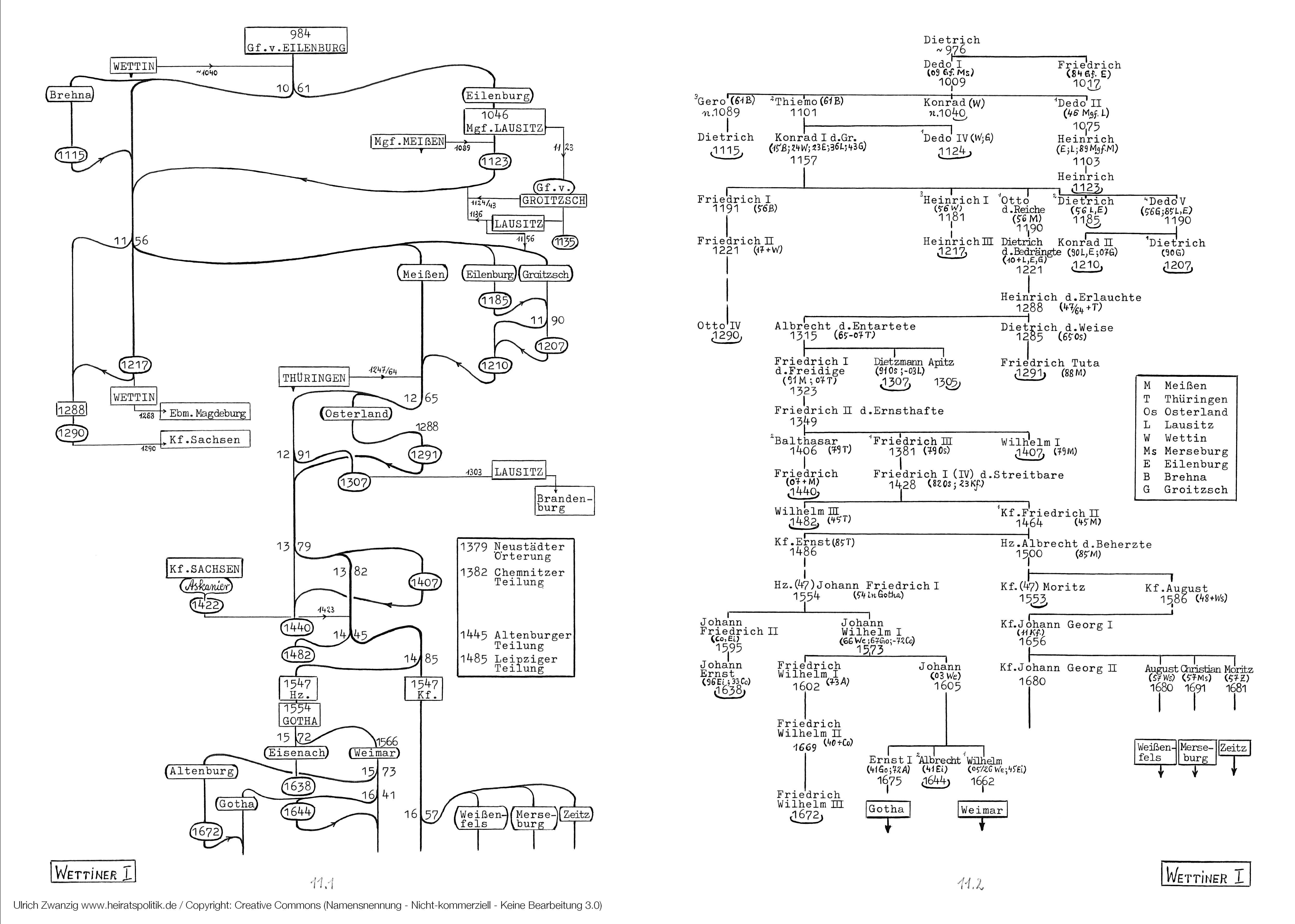 Zunächst hatte sich der Stammbesitz des Hauses Wettin auf die Gft. Eilenburg beschränkt. Es erlebte seinen ersten Durchbruch zum Erfolg, als Gf. Dedo II 1046 mit der Lausitz, sein Sohn Heinrich 1089 mit der Mark Meißen belehnt wurde. Aber nach dessen Sohn Heinrich brach die Linie Eilenburg 1123 ab, und die Lausitz ging an die Grafen v. Groitzsch, nach deren Ende sie freilich 1136 wieder an die Wettiner zurückkehrte.
