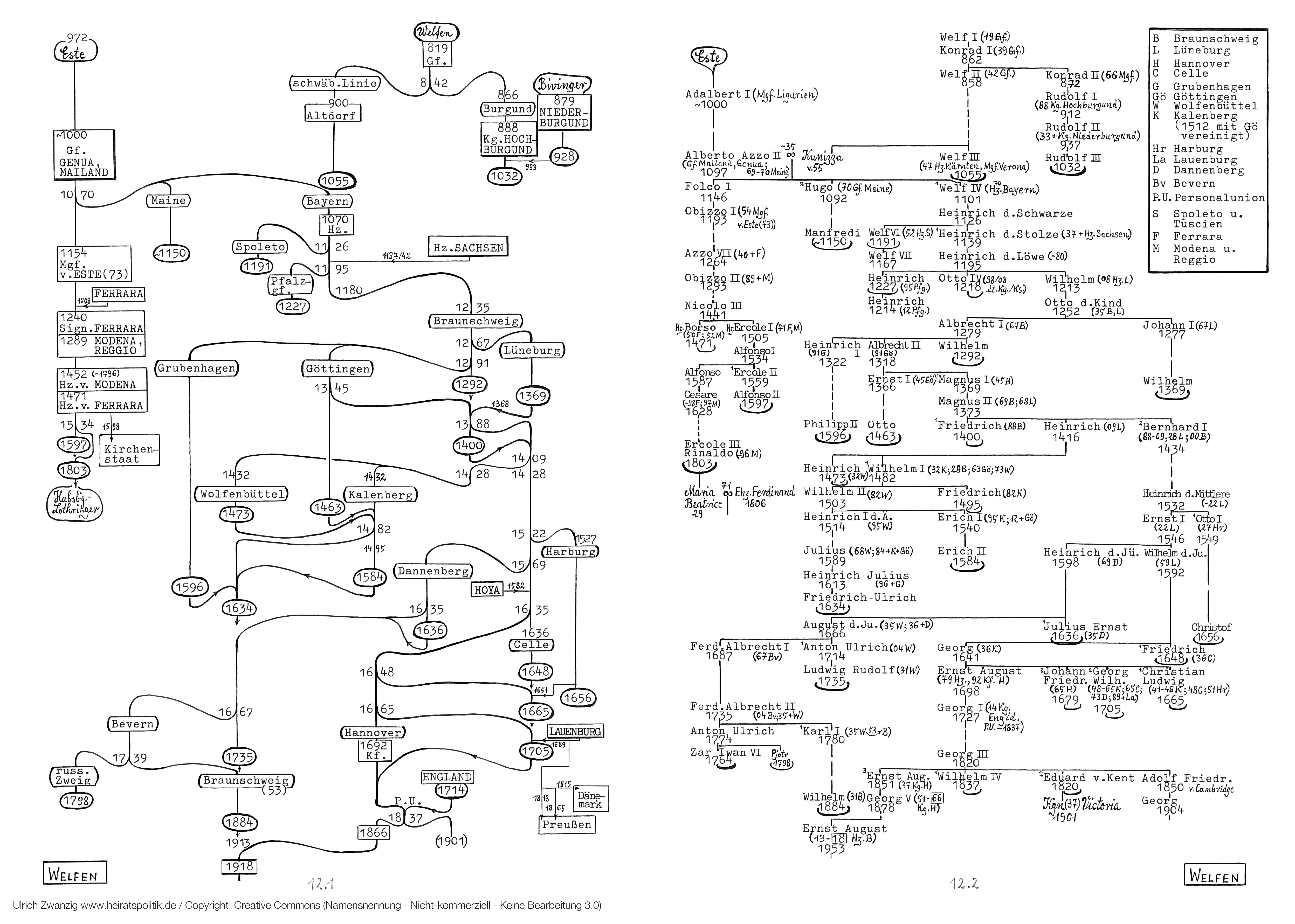 Das Geschlecht der Welfen erlosch 1055. Bei der unter ihrem Namen bekannten niedersächsischen Territorialdynastie handelt es sich vielmehr um das Haus Este. Die Welfen verhalten sich zu den Este wie die Habsburger zu den Lothringern: Nach dem Erlöschen der ersteren 1740 sind letztere, die Nachkommen Franz Stefans und Maria Theresias, unter dem Namen Habsburger bekannt.