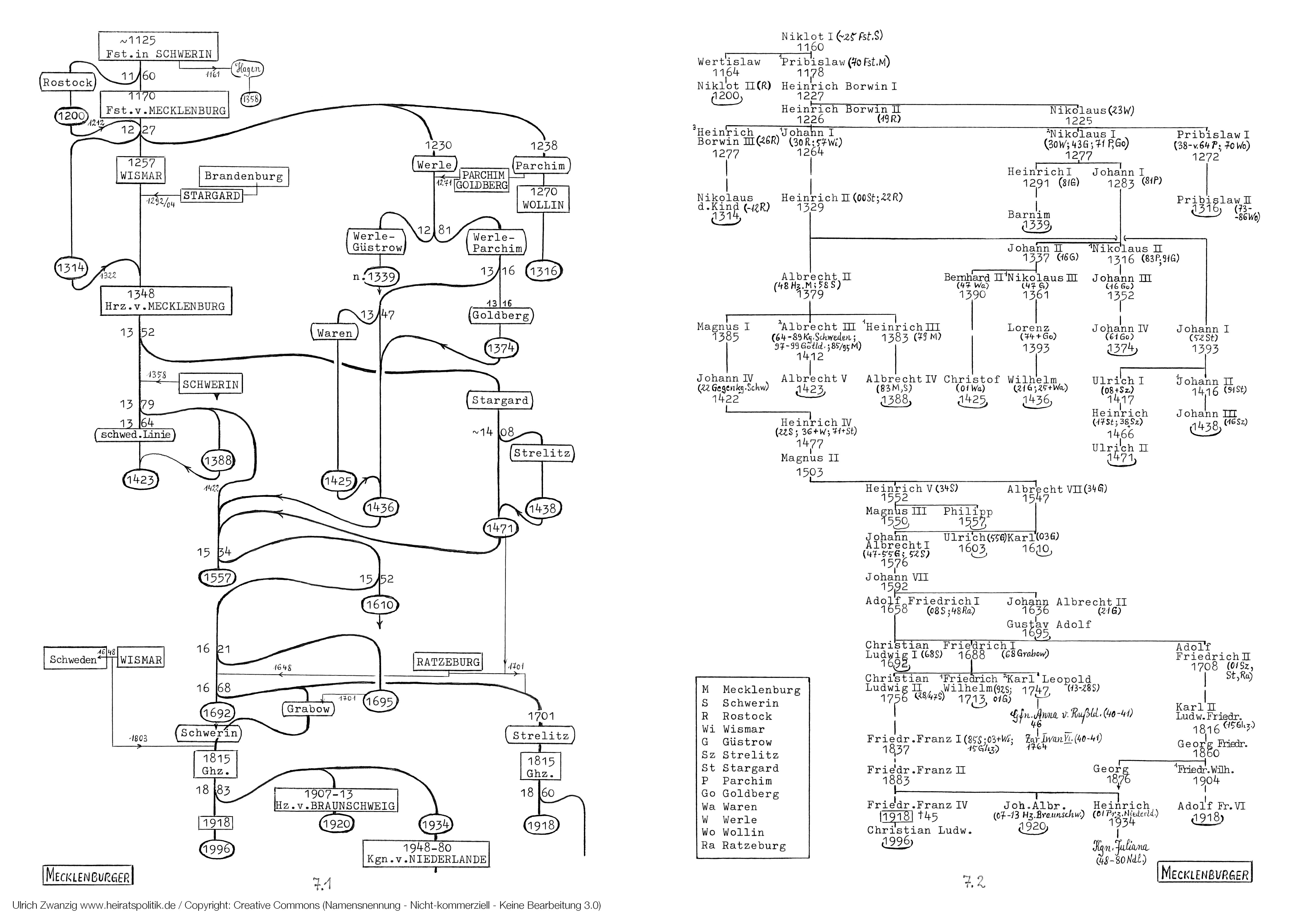 Anläßlich des Abgangs (1695) des 1621 nochmals erneuerten Zweiges Güstrow entstand neben der (über den Zweig Grabow) erneuerten Hauptlinie Schwerin die zweitwichtigste Linie: Strelitz. Und zwar geschah dies 1701, indem zu Stargard außerdem Teile Ratzeburgs hinzukamen. Denn Hz. Adolf Friedrich I hatte das Fsm. Ratzeburg 1648 erhalten, als ihm Wismar an Schweden (bis 1803) verlorenging.